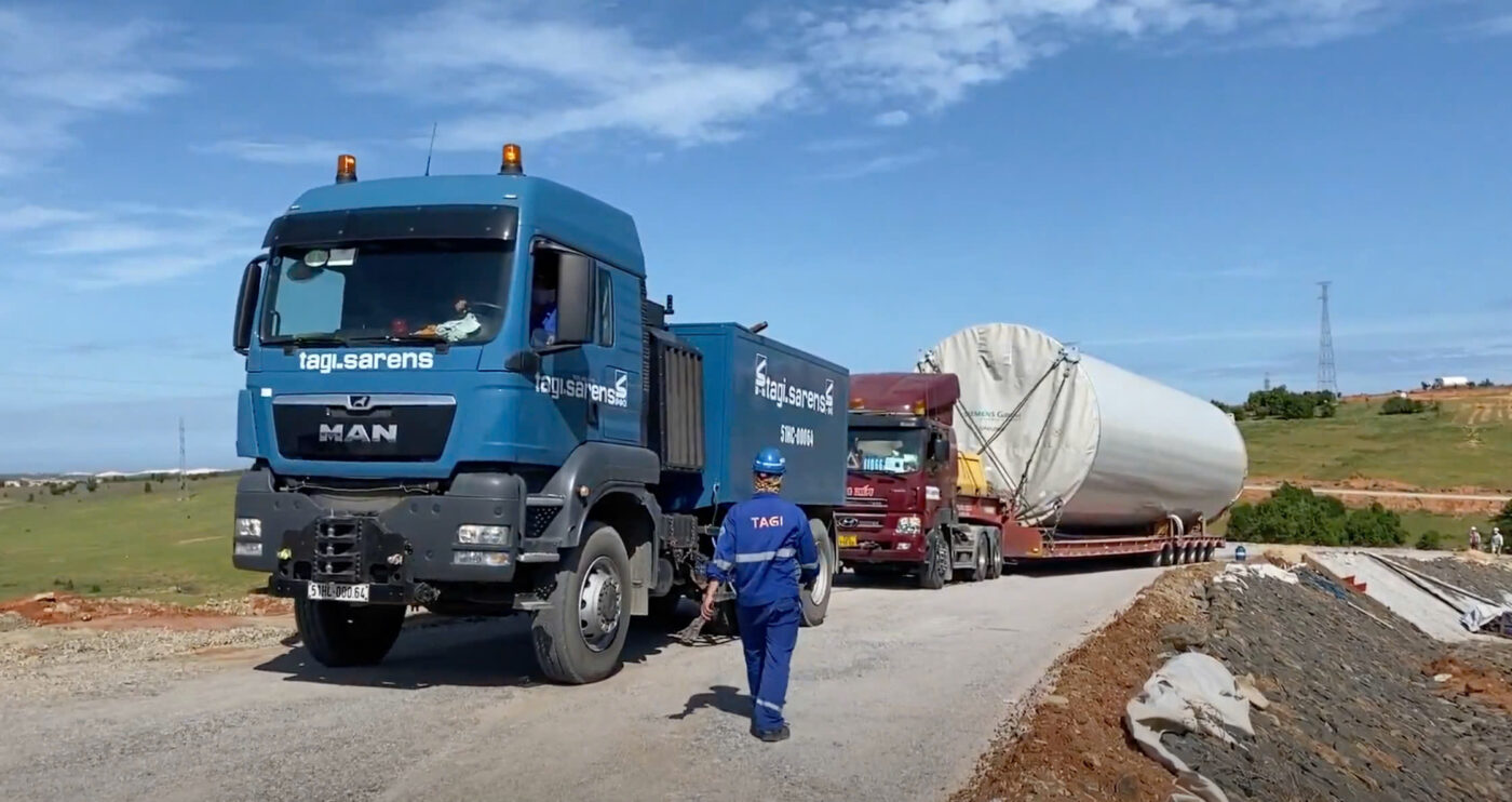 n June 2021, TAGI Logistics once again demonstrated its strength in large-scale wind energy logistics with the successful execution of the Hanbaram Wind Power Project in Ninh Thuận, Vietnam. Partnering with Sinonorth, TAGI was entrusted with the critical tasks of transporting and unloading 29 wind turbine generators (WTGs) — making this one of the larger-scale wind logistics projects in the region.
